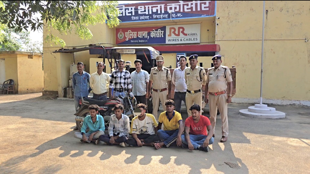 सारंगढ़|| ट्रेक्टर की ट्राली को चोरी करने वाले आरोपीगण को कोसीर पुलिस ने गिरफ्तार कर भेजा जेल मामले का संक्षिप्त विवरण इस प्रकार है प्रार्थी विजय कुमार चौहान पिता लखन लाल चौहान उम्र 44 साल ग्राम छुहिपाली थाना कोसीर दिनांक 28.04.24 को थाना उपस्थित आकर रिपोर्ट दर्ज कराया कि दिनांक घटना 27.04.2024 के दरमियानी रात्रि किसी अज्ञात चोर द्वारा ग्राम छुहिपाली सामुदायिक भवन के पास खडी ट्रेक्टर के ट्राली को चोरी कर ले गया है कि रिपोर्ट पर अपराध धारा 379 भादवि पंजीबद्ध कर विवेचना में लिया गया था कि विवेचना दौरान लगातार चोर एवं चोरी गई माल मशरूका के बारे में पतासाजी की जा रही थी कि मुखबीर से सूचना मिला कि ग्राम सुलोनी थाना सारंगढ के कुछ लडकों के द्वारा उक्त घटना को अंजाम दिया गया है जिसके संबंध में ग्राम सलोनी में मुखबीर लगाये गये जिनके द्वारा सुनील बरेठ अपने साथियों के साथ मिलकर चोरी कि घटना को अपने दोस्त मनमोहन कर्ष,मनीष बरेठ ,सुनील खुटे, राहुल बरेठ के साथ प्लानिंग बनाकर अंजाम दिये हैं जिसमें चोरी गये ट्रेक्टर के ट्राली को सुनील बरेठ द्वारा अपने स्वयं के ट्रेक्टर के इंजन की मदद से अपने दोस्तों के साथ मिलकर चोरी किया व अपनी ही मोटरसायकल को रेकी करने के लिये अपने दोस्त सुनील ऊर्फ लुढू खुटे व मनीष बरेठ को रास्ता खाली है या नही ट्रेक्टर के आगे आगे रवाना किया और ट्रेक्टर के ट्राली को अपने स्वयं के ट्रेक्टर के इंजन से खींचकर जिला रायगढ के पहाड मंदिर के पास स्थित जंगल में छुपा दिये व ग्राहक की तलाश बिक्री हेतु कर रहे थे । जिस प्रकरण में गिरफ्तार आरोपी सुनील बरेठ पिता पन्नालाल बरेठ एवम टोटल पांच व्यक्ति सभी साकिनान सुलोनी थाना सारंगढ जिला सारंगढ बिलाईगढ छ0ग0