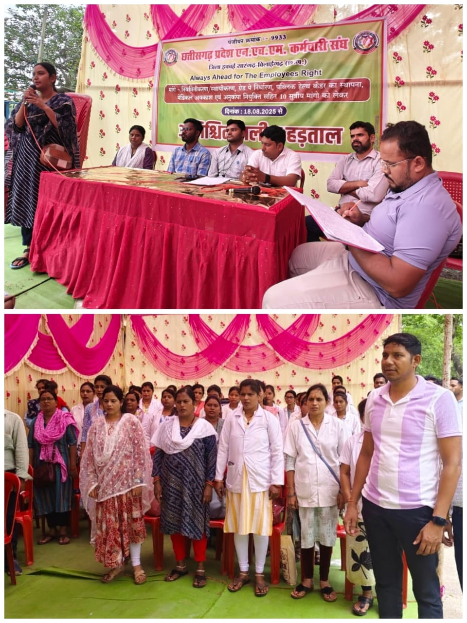 सारंगढ़: छत्तीसगढ़ प्रदेश में कार्यरत 16,000 राष्ट्रीय स्वास्थ्य मिशन (NHM) कर्मचारी अपनी नियमितीकरण एवं 10 सूत्रीय मांगों को लेकर अनिश्चितकालीन हड़ताल पर चले गए हैं। कर्मचारियों की हड़ताल का सीधा असर प्रदेश की स्वास्थ्य सेवाओं पर पड़ रहा है, जिससे अस्पतालों में मरीजों को भारी परेशानी का सामना करना पड़ रहा है।