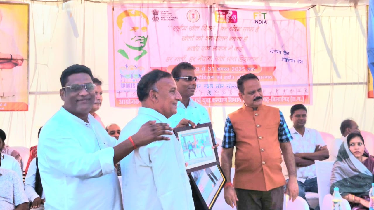 सारंगढ़ बिलाईगढ़ न्यूज़ 29 अगस्त हॉकी के जादूगर मेजर ध्यानचंद जी की जयंती पर राष्ट्रीय खेल दिवस के उपलक्ष में सारंगढ़ खेल फटा स्टेडियम में जिला खेल संघ के द्वारा खेल खिलाड़ी और खेल मैदान की को लेकर उल्लेखनी या कार्य करने और साथ ही स्वतंत्रता दिवस के अवसर पर सद्भावना क्रिकेट मैच में उत्कृष्ट प्रदर्शन करने पर जिला खेल संघ में जिले के कलेक्टर डॉ संजय कन्नौजे जी को प्रतीक चिन्ह बैठकर सम्मानित किया मंच पर आसीन तमाम आगंतुक अतिथियों और जनप्रतिनिधि ने भी जिला कलेक्टर के उल्लेखनीय पहल की मंच से प्रशंसा की जिला कलेक्टर ने खेल खिलाड़ी और खेल मैदान को लेकर हर वर्ग से एक अनुशासित खेल भावना का परिचय देने की अपील की। विधायक में जिला कलेक्टर के साथ उत्कृष्ट खिलाड़ियों की सराहना की जिला पंचायत अध्यक्ष ने खेल को अनुशासित होकर लग्न से और खेल भावना से खेलने की अपील की और खेल दिवस की बधाई दी ज्योति पटेल ने खिलाड़ियों का संवर्धन किया और युवा दिवस पर बधाई दी जनपद अध्यक्ष ने खेल के महत्व को बताते हुए खिलाड़ियों को कड़ी मेहनत करने की बात कहते हुए खेल दिवस और इस कार्यक्रम की प्रशंसा की। खेल संघ की ओर से गोल्डी नायक ने जिले के सभी खेल संगठनों और क्लबो की जानकारी देते हुए बताया कि नवीन जिला के कारण सभी खेल संगठनों का नवीन रजिस्ट्रेशन जिला स्तर पर होना है कुछ संगठनों के रजिस्ट्रेशन कार्य प्रगति में है साथ ही उन्होंने नवीन सारंगढ़ बिलाईगढ़ जिले में खेल परिसर बनाए जाने की मांग रखी।